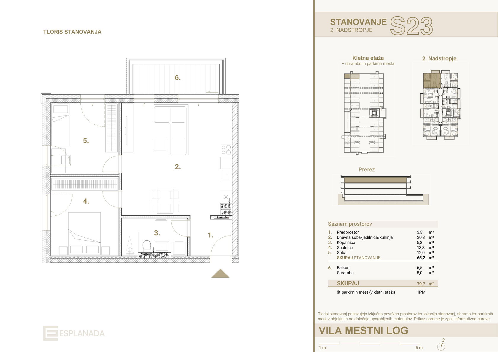 The three-room apartment S24 offers a well-thought-out layout, where the central living area with kitchen and dining room connects all living functions. Two separate bedrooms ensure privacy, while the living area remains the center of the home. The living room opens onto a spacious balcony. The apartment is located on the second floor and faces northeast. The apartment features high ceilings, brightness, and above-standard equipment (air conditioning, heat recovery, smart installations). The apartment comes with a storage room and a parking space in the garage.