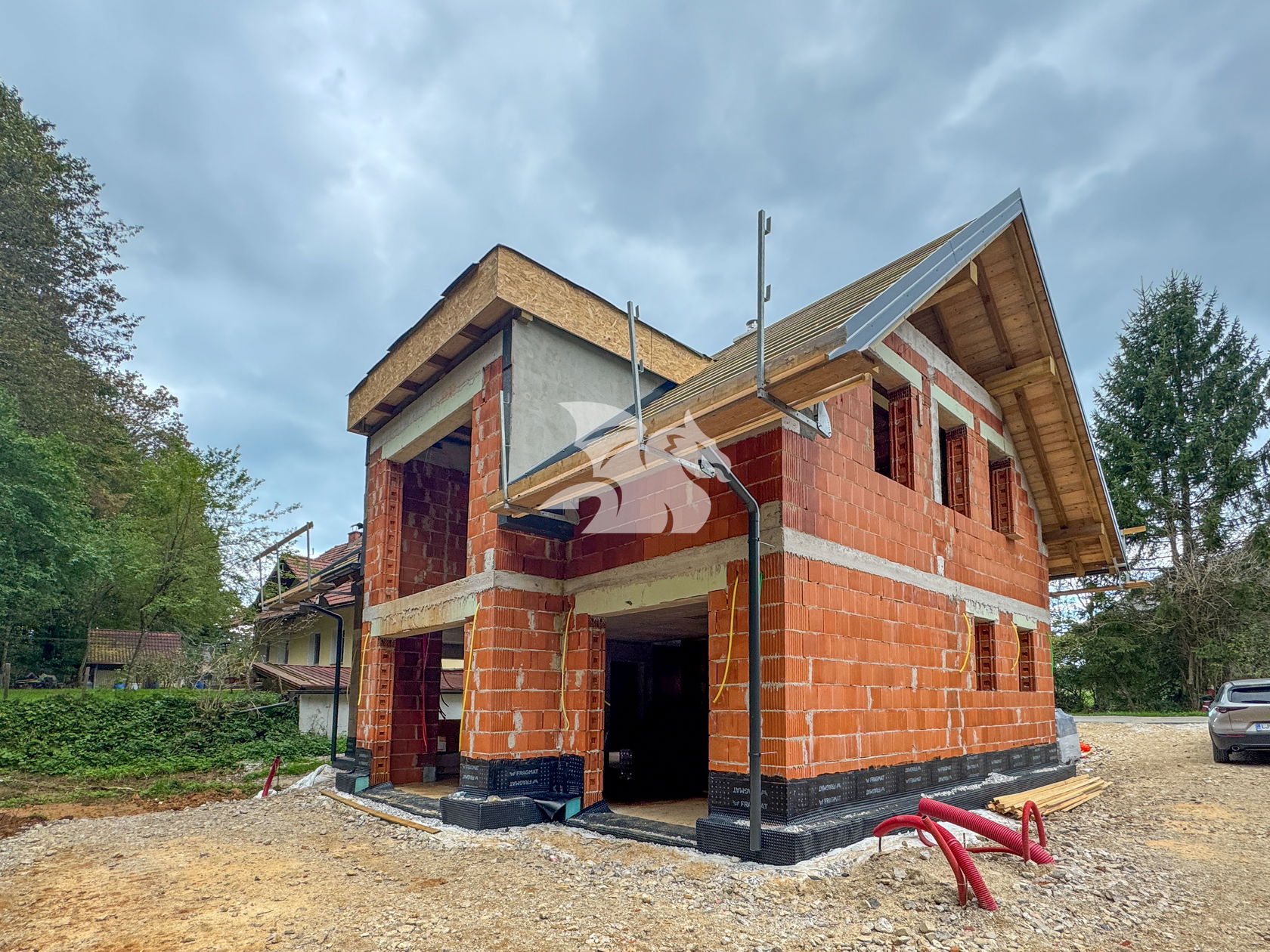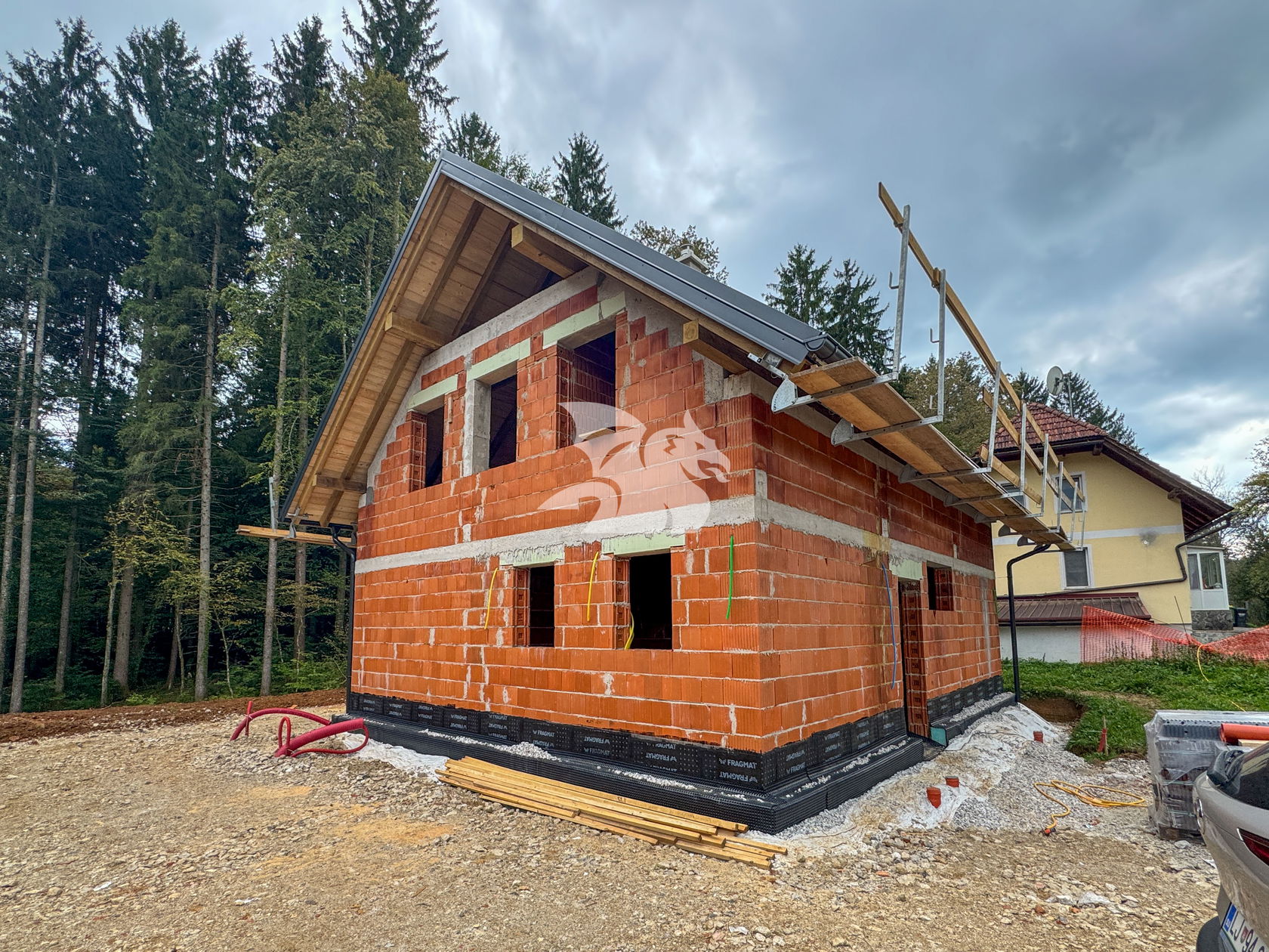 In an idyllic location in the village of Male Kompolje near Muljava, we are selling a newly built detached family house, currently in the third construction phase, built in 2025. The house stands on a beautiful flat plot of land bordering the forest, measuring 604.00 m².