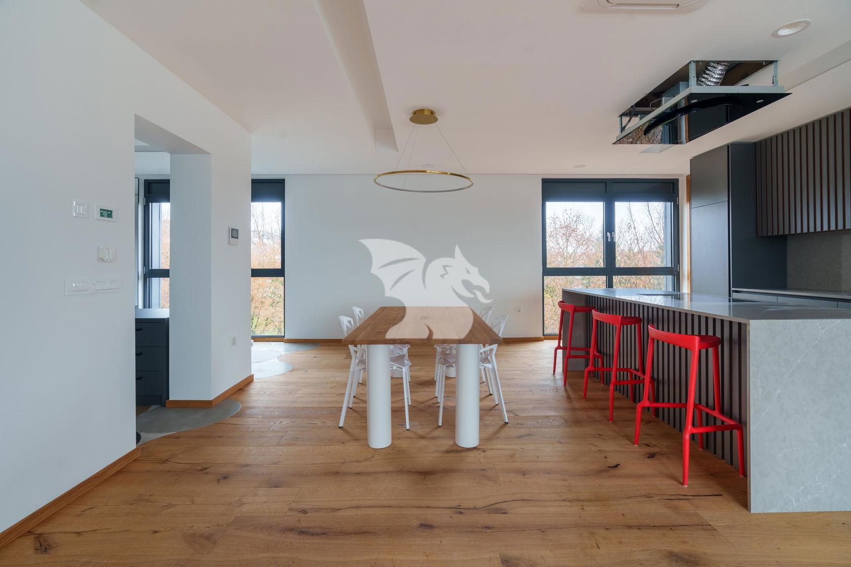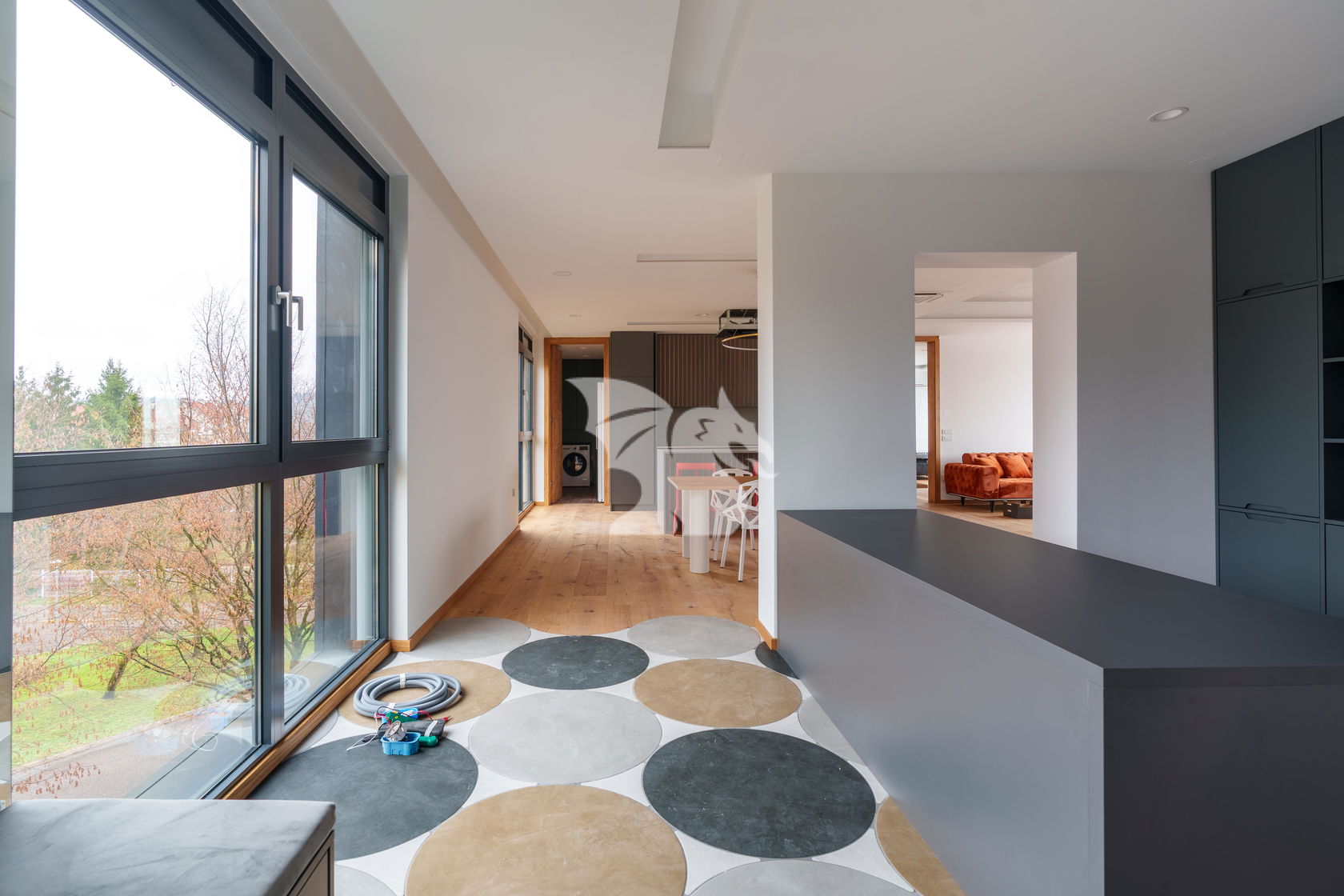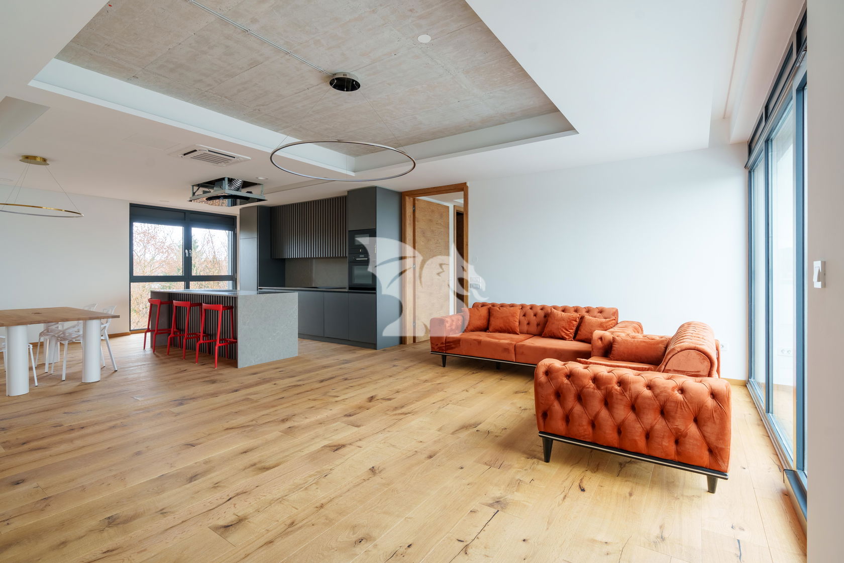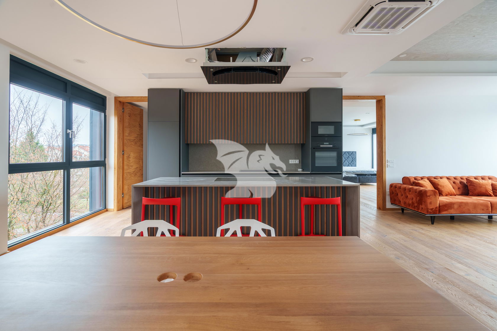 Stanovanje ima vgrajene pametne inštalacije, s katerimi lahko preko telefona upravljate razsvetljavo, temperaturo, zatemnitev prostorov...