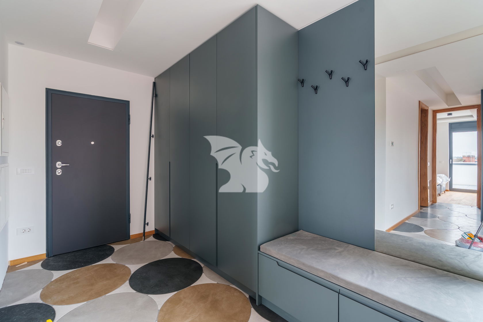 Tlorisno obsega večji predprostor z delovnim kotičkom, zelo prostoren dnevno bivalni del s kuhinjo in jedilnico v povezavi z dnevno sobo, z izhodom na teraso, glavno spalnico z lastno kopalnico in izhodom na teraso, dve sobi, obe z izhodom na teraso, dodatno kopalnico s prho in kadjo, ločeno dnevno toaleto in utility. Stanovanje odlikuje funkcionalnost in dovršen dizajn, ki ustvarja maksimalno udobje in kvaliteto bivanja. Vsa oprema v stanovanju je višjega kakovostnega razreda in izdelana po meri.